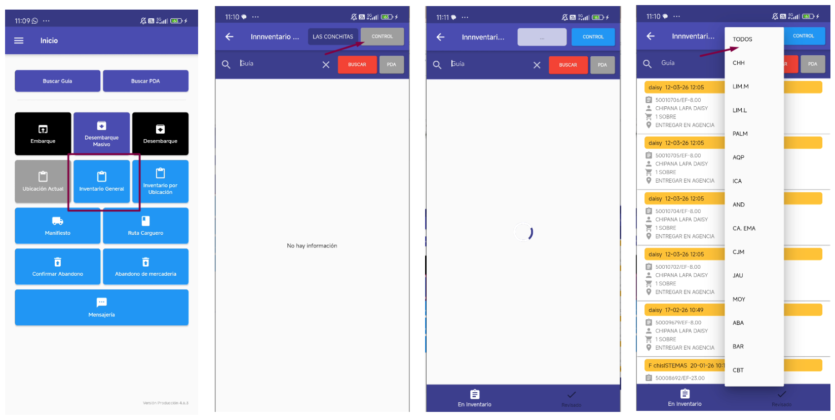 - Módulo Inventario Ubicación → Vista Inventario Ubicación