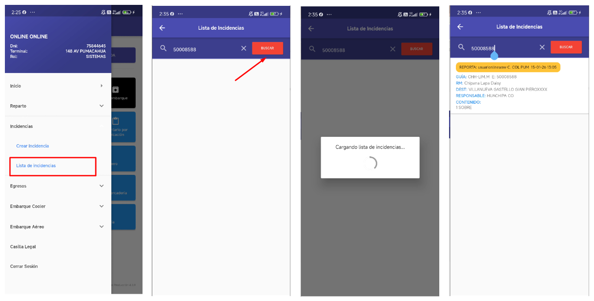 - Evento: Al presionar buscar una vez digitado el nro de guia.