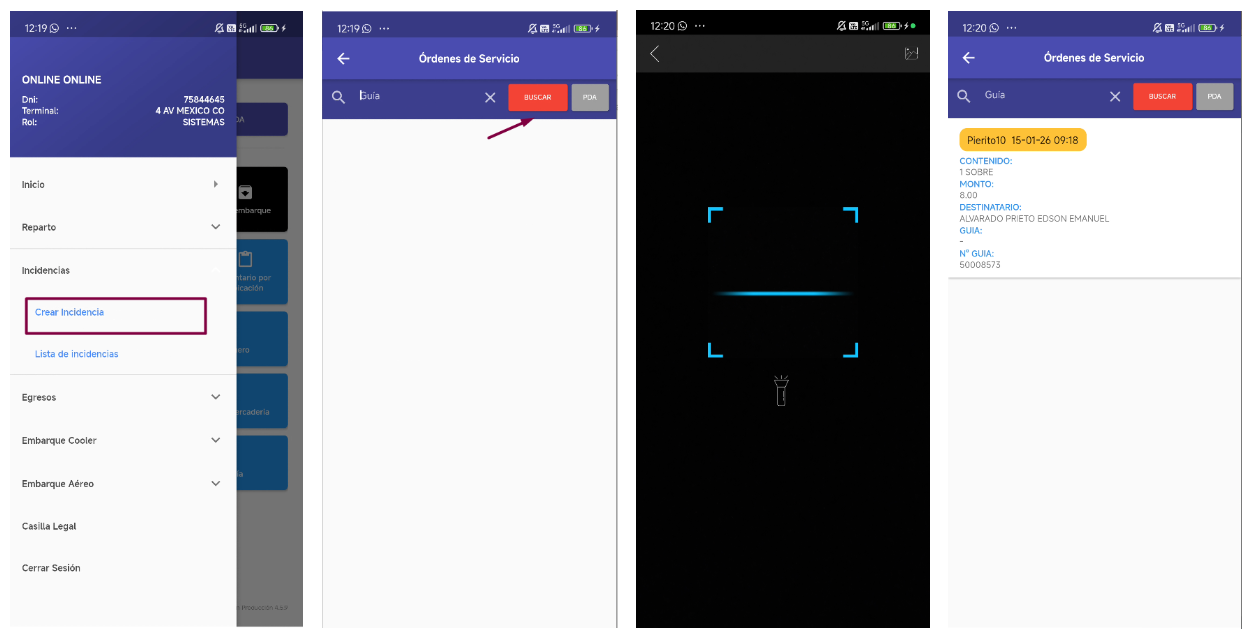 - Módulo Incidencias→ Vista Ordenes de servicio