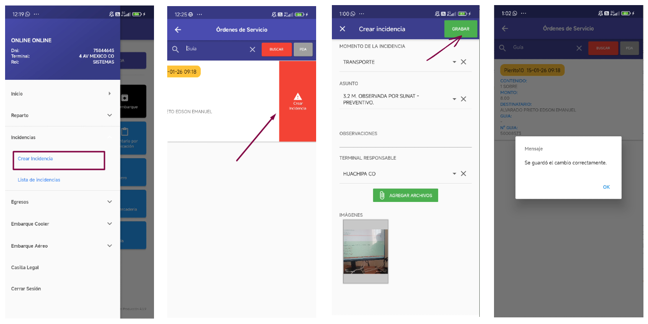 - Uso: Registra la incidencia.