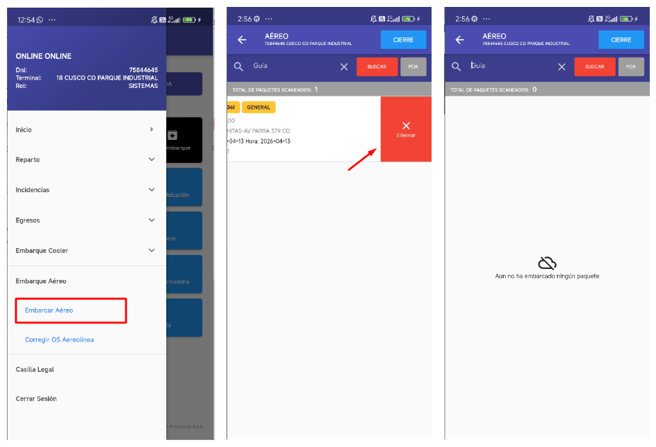 - Módulo Embarque Aereo (opcion 2) → Vista Aereo