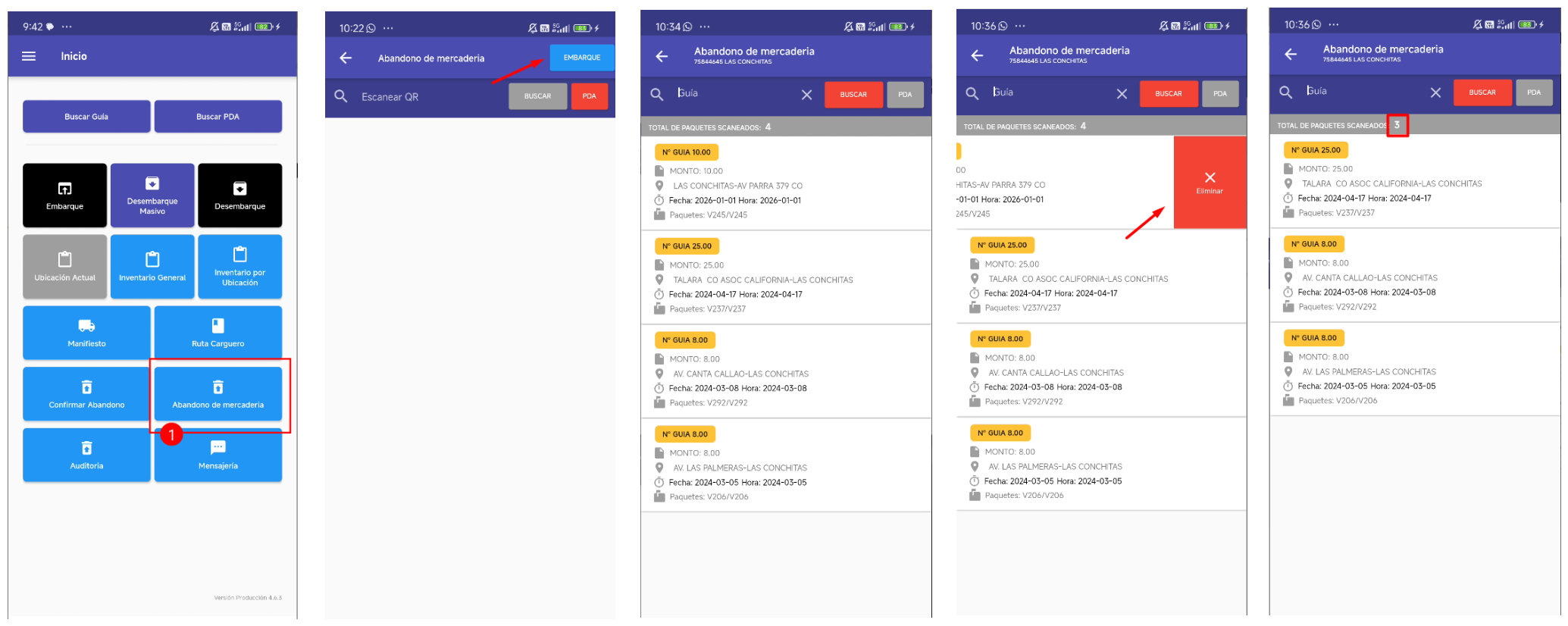 - Módulo Abandono de mercaderia → Vista Abandono de mercaderia