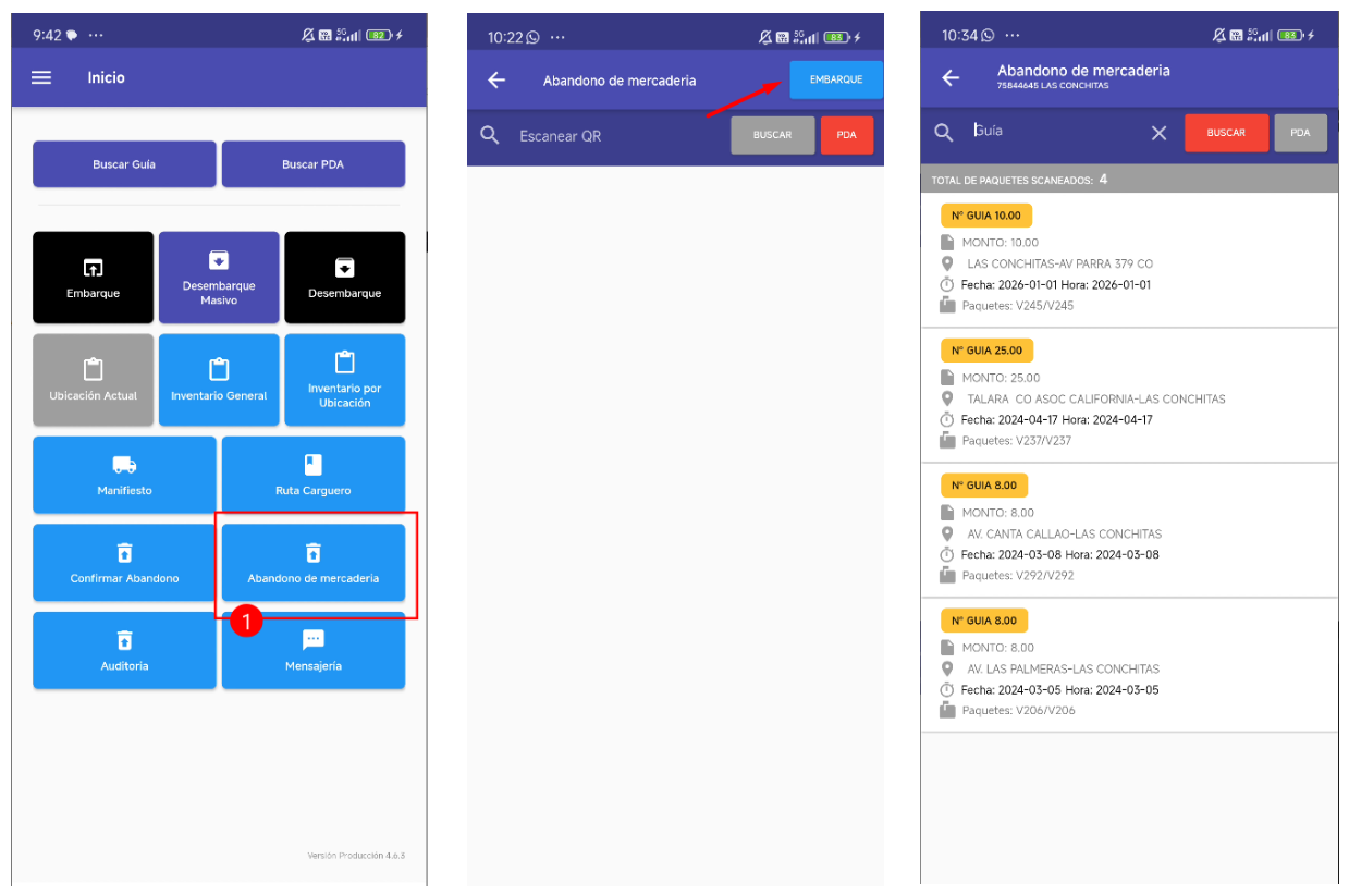 - Módulo Abandono de mercaderia → Vista Abandono de mercaderia