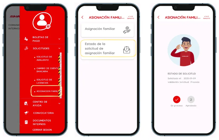 - ¿Cuándo se usa? Al ingresar a la opción “Asignación familiar” y al botón “Estado de la soliciud de asignación familiar”.