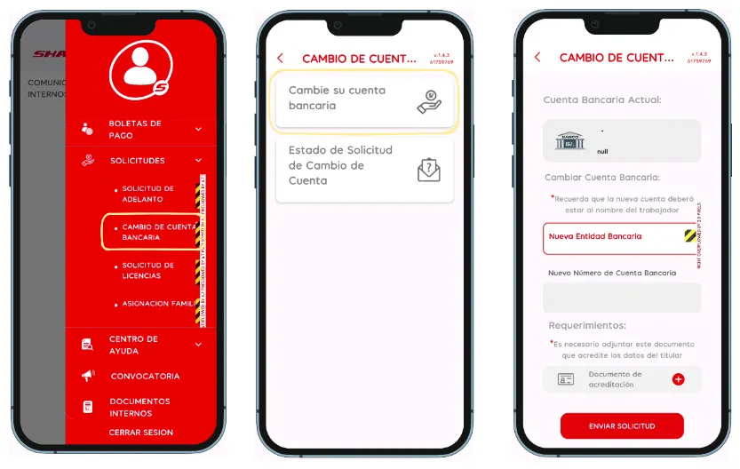 - ¿Cuándo se usa? Al ingresar a la opción “Cambio de cuenta bancaria” y al botón “Solicite un adelanto”.