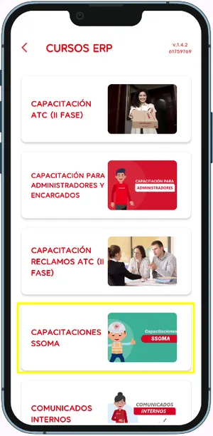- ¿Cuándo se usa? Al ingresar a la opción “Cursos” y luego “Capacitaciones SSOMA”