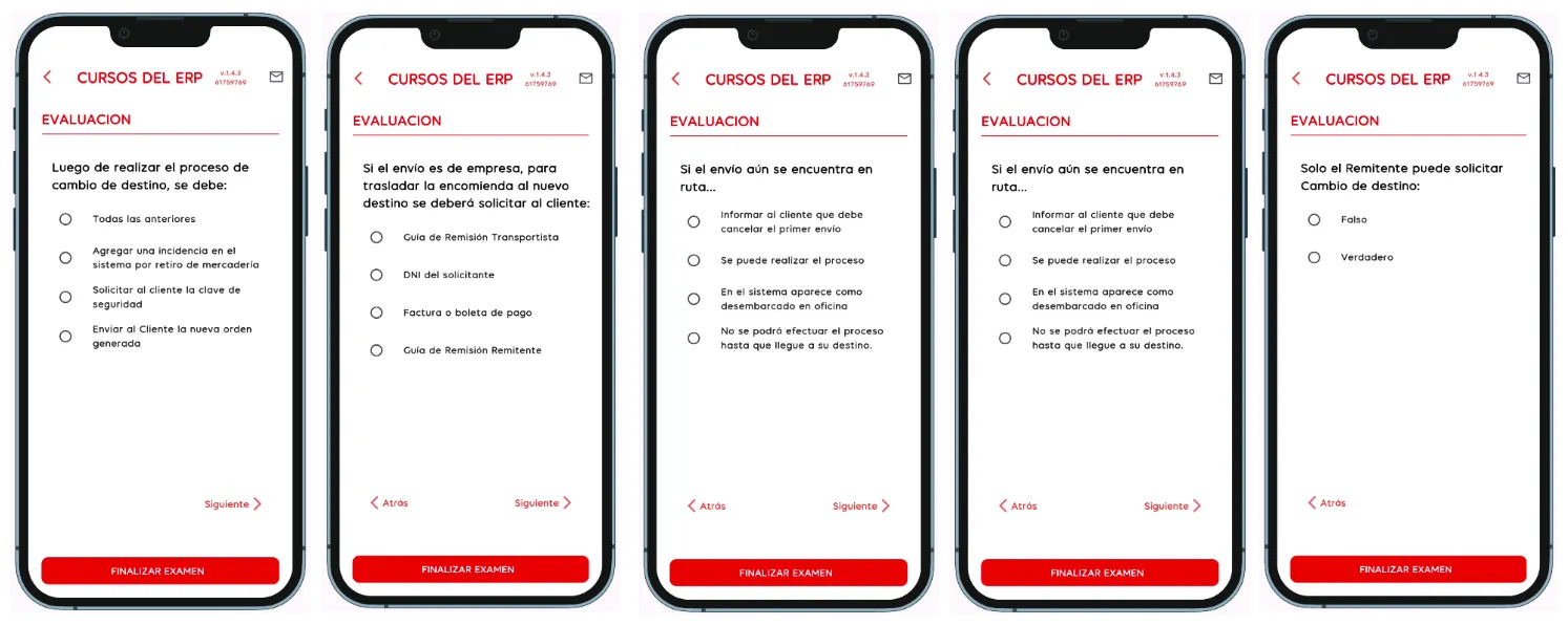 - ¿Cuándo se usa? Al ingresar a la opción “Cursos”, luego “CAPACITACIÓN ATC (II FASE)”, luego “DIA 2 - Devolución de mercadería” y presionas el boton “Realiza tu evaluación”, una vez que marcas todas las preguntas presionas el boton “Finalizar Examen”.