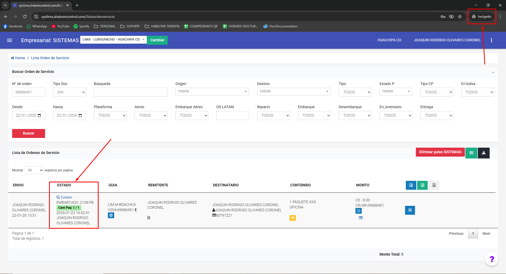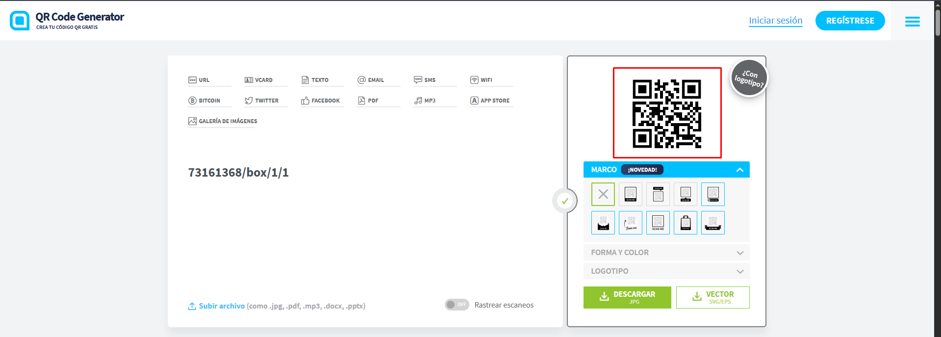 EN ESTA PAGINA CON EL ID OBTENIDO, TENDREMOS QUE AGREGARLE EL COMANDO " /box/1/1 ", PARA PODER HACER EL EMBARQUE DEL PAQUETE. ( IGUALMENTE SI TUVIERAMOS EL QR IMPRESO, SE ESCANEA ESE )