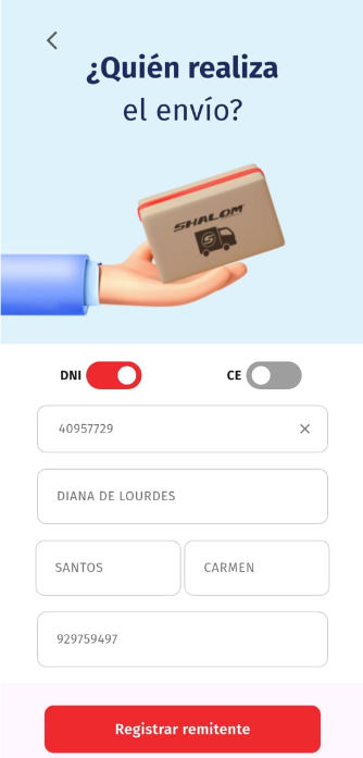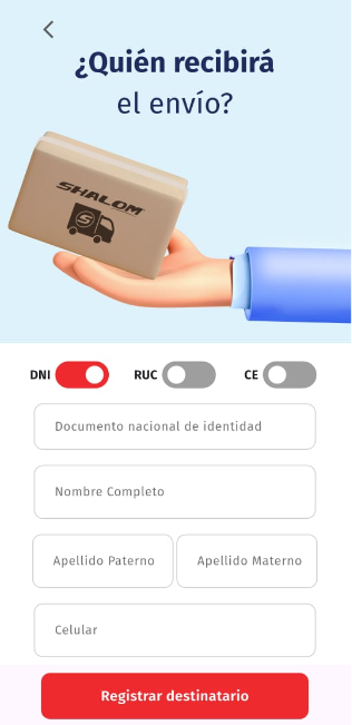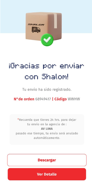Dentro de aqui se podra visualizar este menú, donde encontraremos los tipos de paquetes que ofrece shalom para realizar el envio