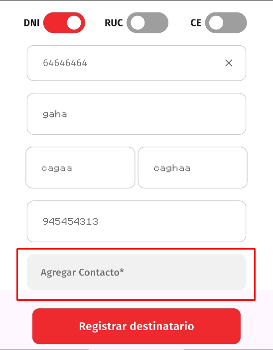 Tambien podremos agregar un contacto opcional: