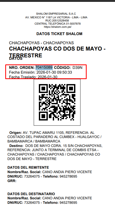 INGRESAMOS EL NUMERO DE ORDEN Y EL CODIGO