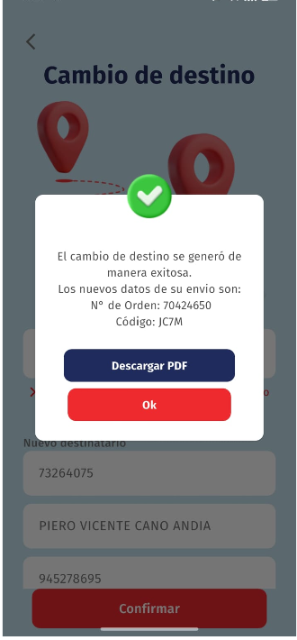 EN ESTE APARTADO PODREMOS REALIZAR LAS OPERACIONES DE CAMBIO DE DESTINO DE UNA GUIA