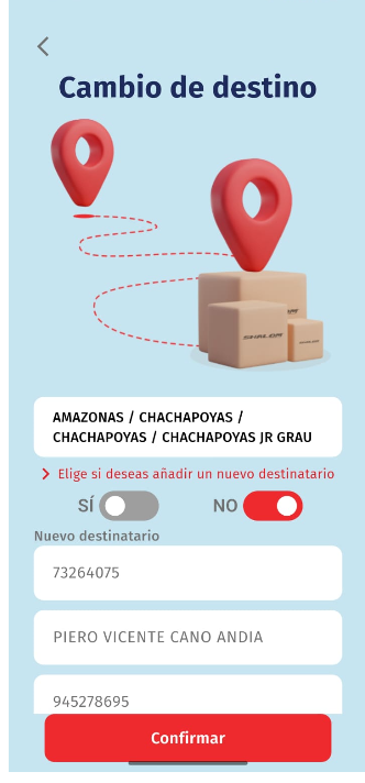 MAS OPERACIONES - CAMBIO DE DESTINO