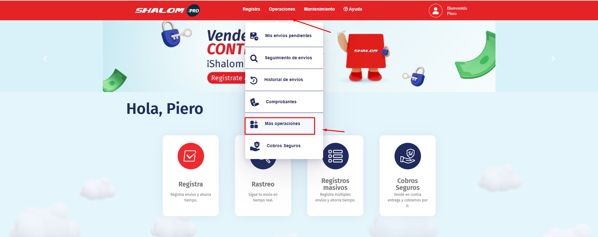 VAMOS A SHALOM PRO O SHALOM APP, DAMOS EN MANTENIMIENTO Y MAS OPERACIONES