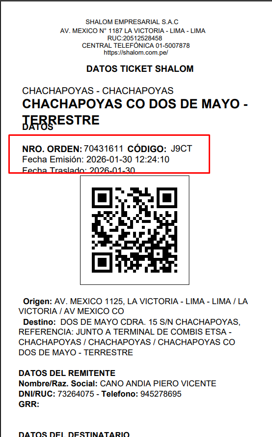 INGRESAMOS EL NUMERO Y CODIGO DE ORDEN
