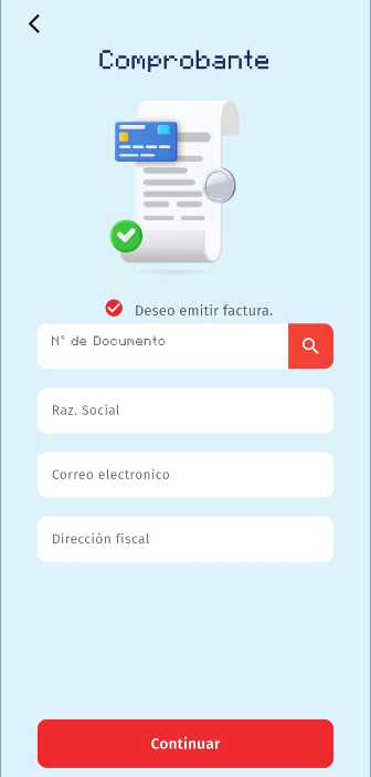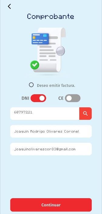 Se puede realizar el comprobante con el DNI o Carnet de extranjeria, ademas de esto el pago se puede realizar de varias formas como se puede observar:
