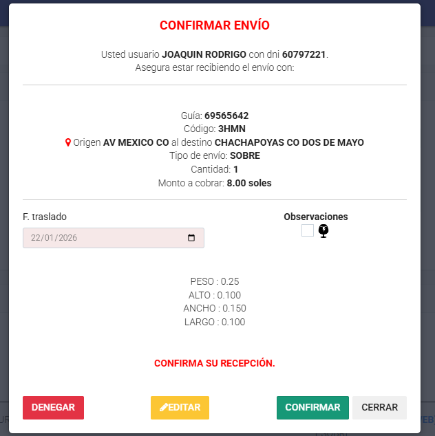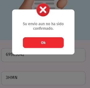 Y si el paquete no esta registrado tambien saldrá "Su envio aun no ha sido confirmado".