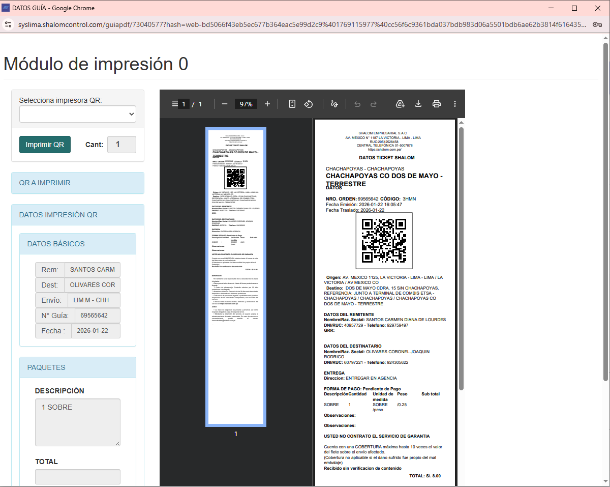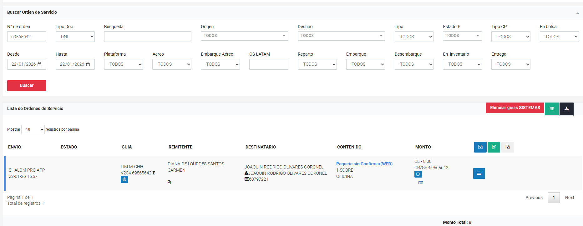 Si se busca una guia OS que no este creada o registrada, saldra el error "No se encontró la orden de servicio.
