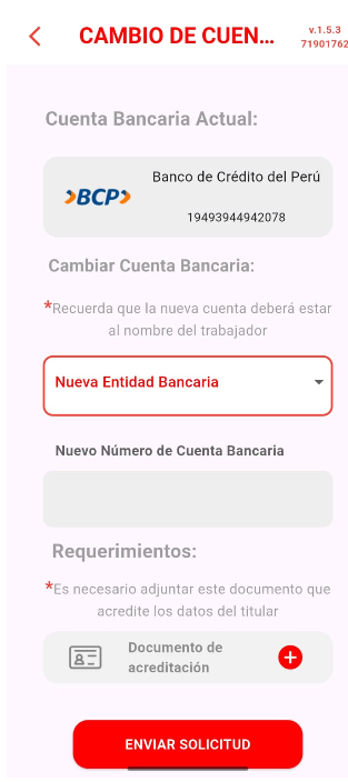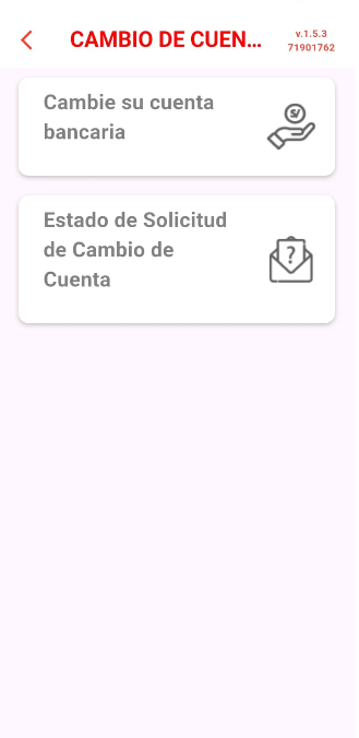 EN ESTE APARTADO EL CLIENTE PUEDE SOLICITAR CAMBIAR SU NUMERO Y TIPO DE CUENTA BANCARIA