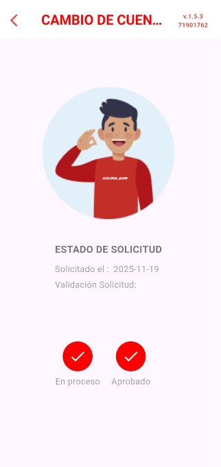 DESPUES DE ELLO PODREMOS HACER SEGUIMIENTO EN EL ESTADO DE SOLICITUD DE CAMBIO DE CUENTA
