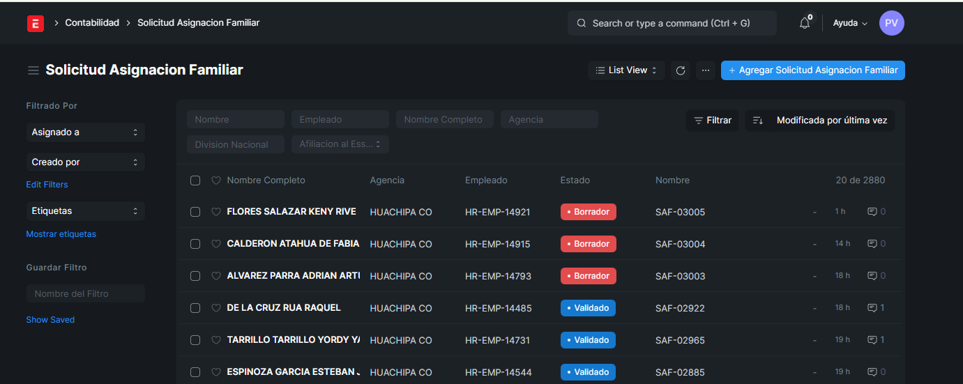 PODREMOS EDITAR, AGREGAR, ELIMINAR, VALIDAR LA SOLICITUD DE ASIGNACION FAMILIAR