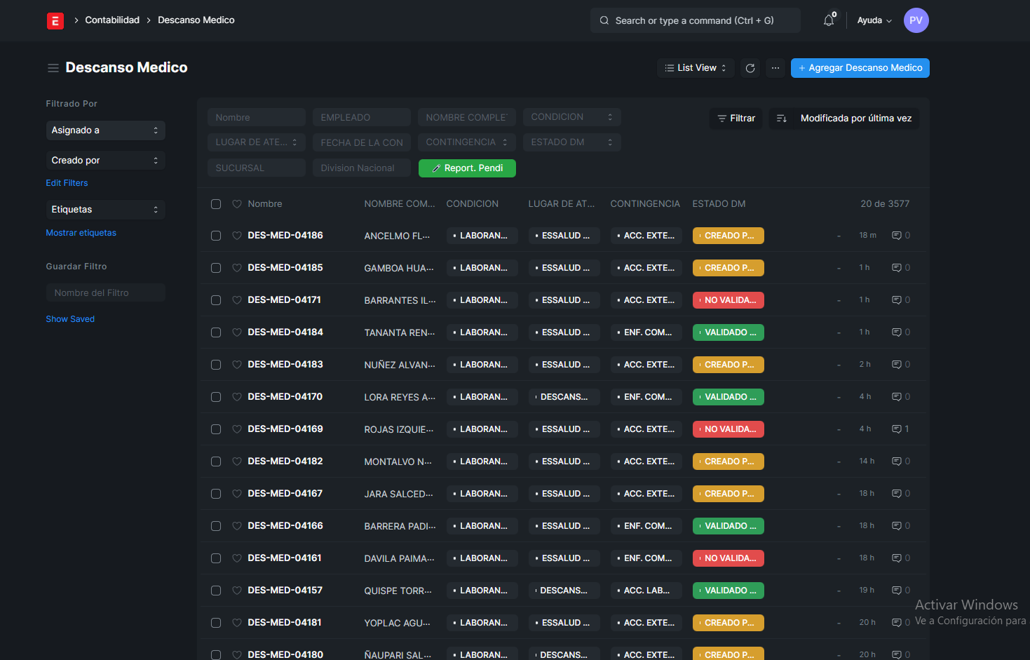 EN ESTE APARTADO PODREMOS VER, CREAR, EDITAR O ELIMINAR LOS DESCANSOS MEDICOS DE LOS EMPLEADOS EN GENERAL