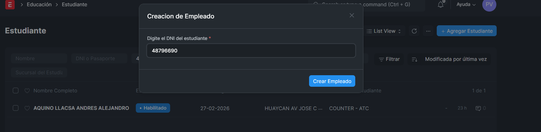 SE CREA EL ESTUDIANTE
