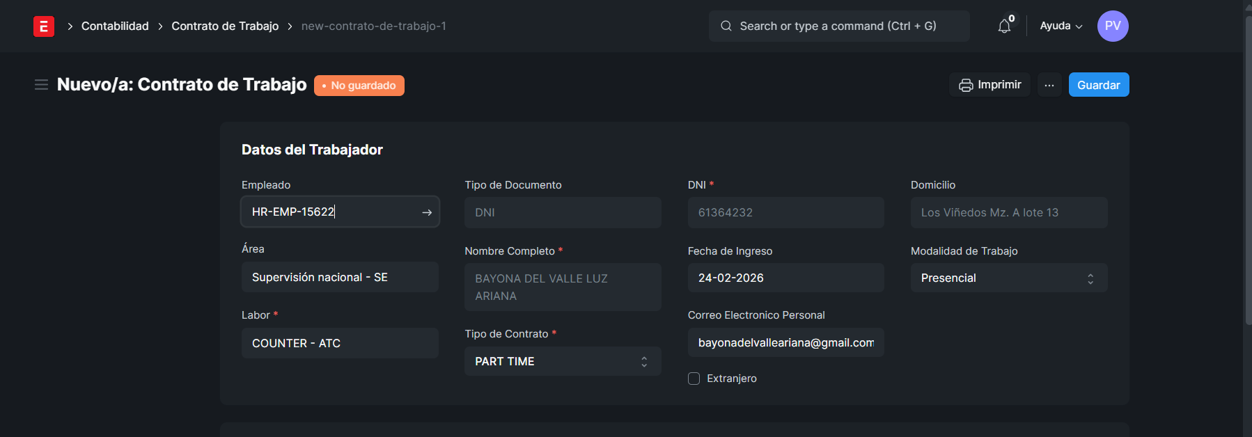 BUSCAREMOS EL CONTRATO CREADO DEL EMPLEADO, DUPLICAMOS Y VALIDAMOS, VERIFICAMOS QUE TODOS LOS DATOS ESTEN COMPLETOS