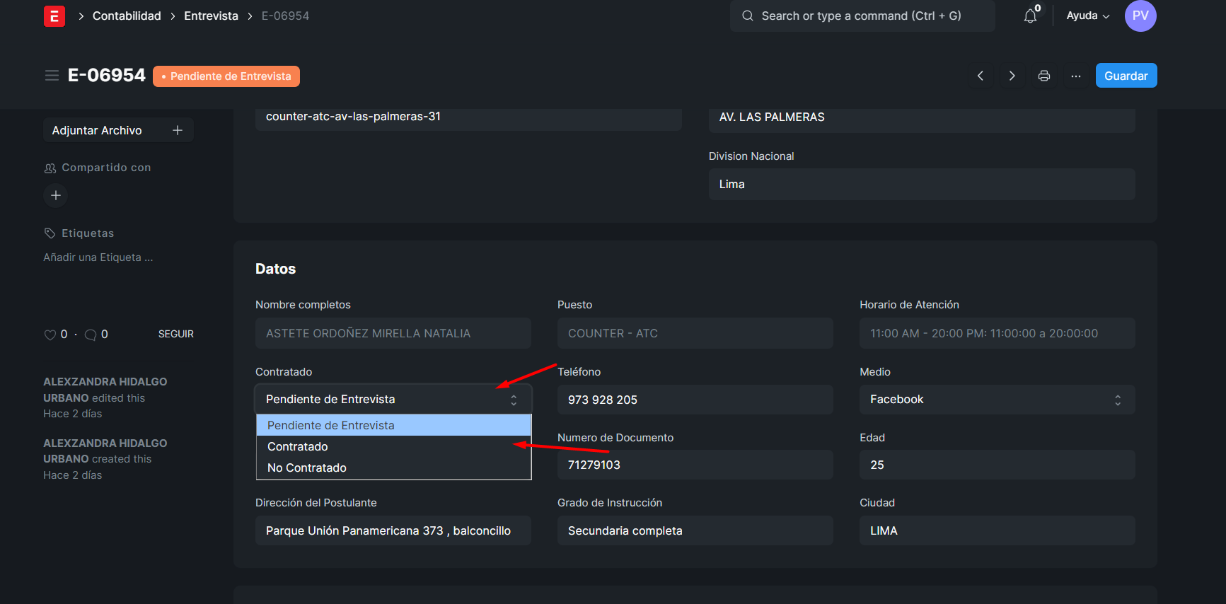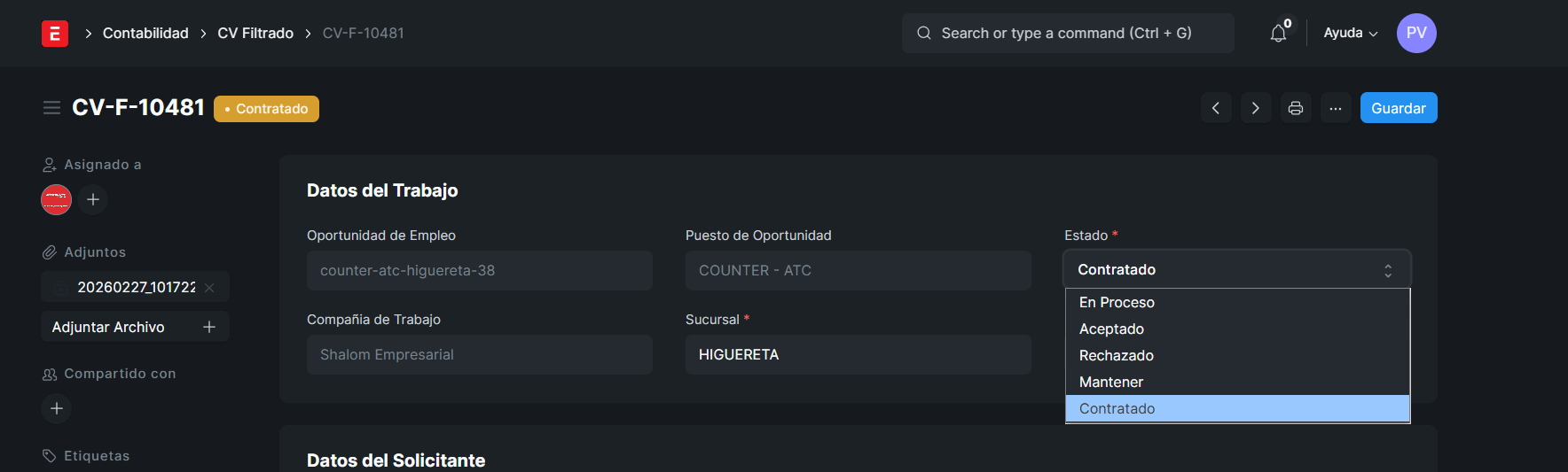 Y RECIEN EN CV FILTRADO APARECERA LA OPCION IGUALMENTE DE CONTRATADO