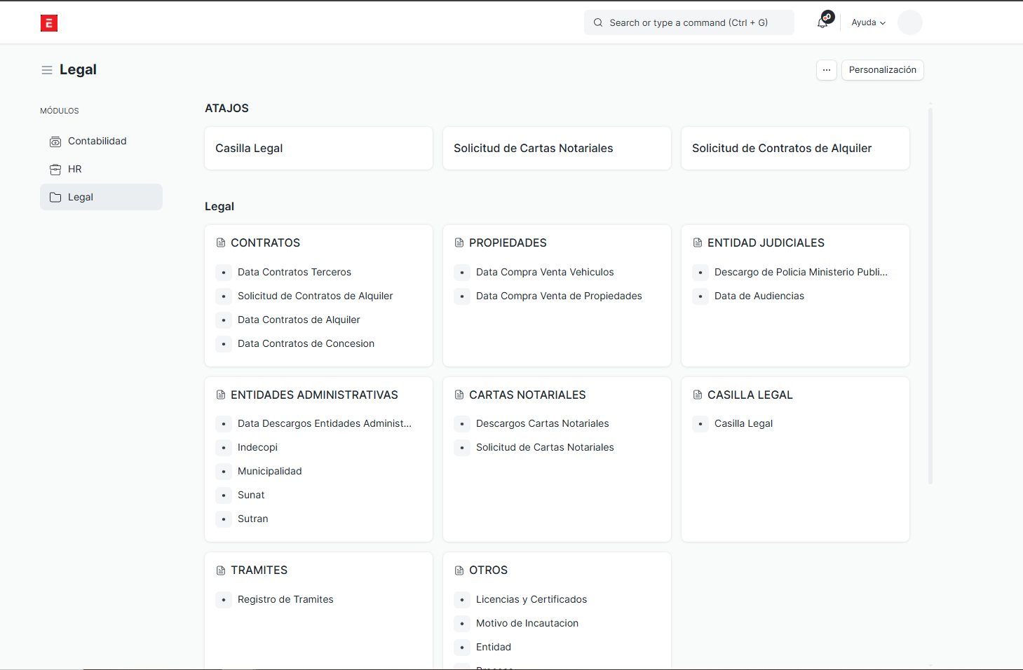 PARA VER TODOS LOS MODULOS DE LEGAL (MODULO LEGAL )
