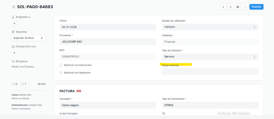 Copiamos el id de la solicitud de pago, ejem: SOL-PAG0-84683