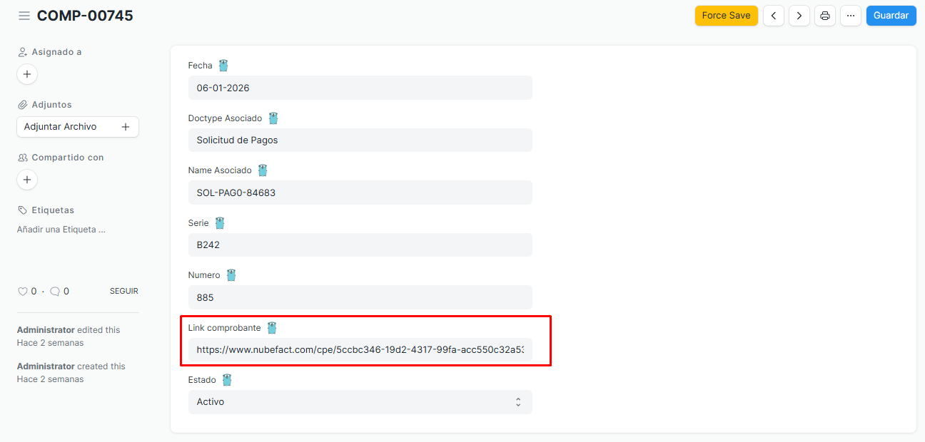 Para verificar si generó de manera correcta verificamos en el apartado de Comprobantes Asociados