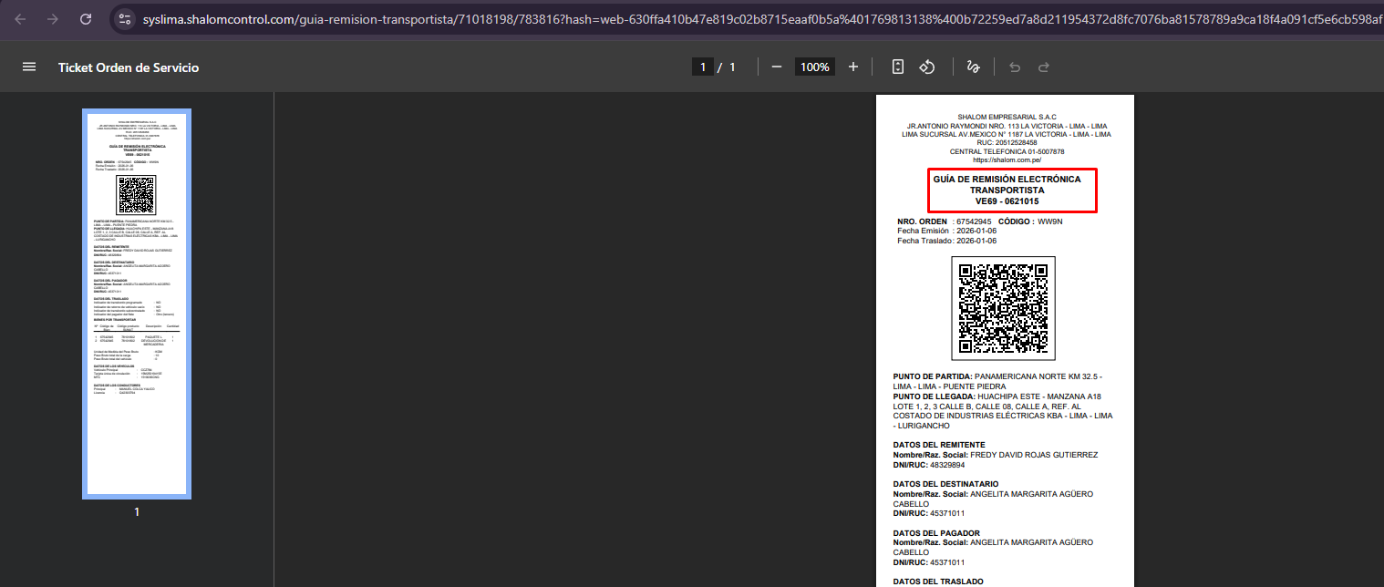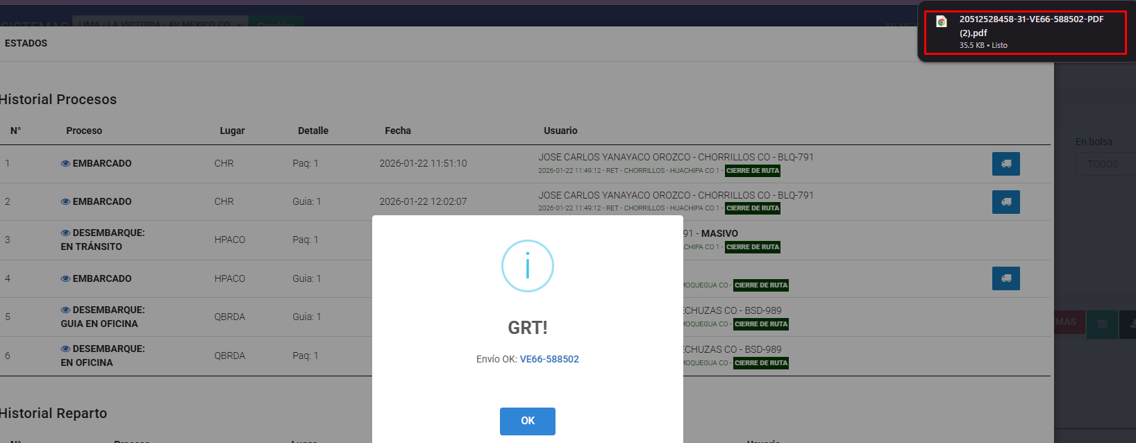 Se tardará un poco generarse ya que realiza la consulta a sunat, al terminar de cargarse te descargara automaticamente un archivo PDF de la GRT.