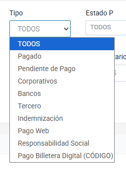 Hay diversos tipos de pago, entre ellos lo que se muestran: