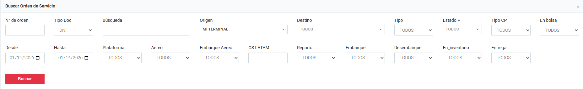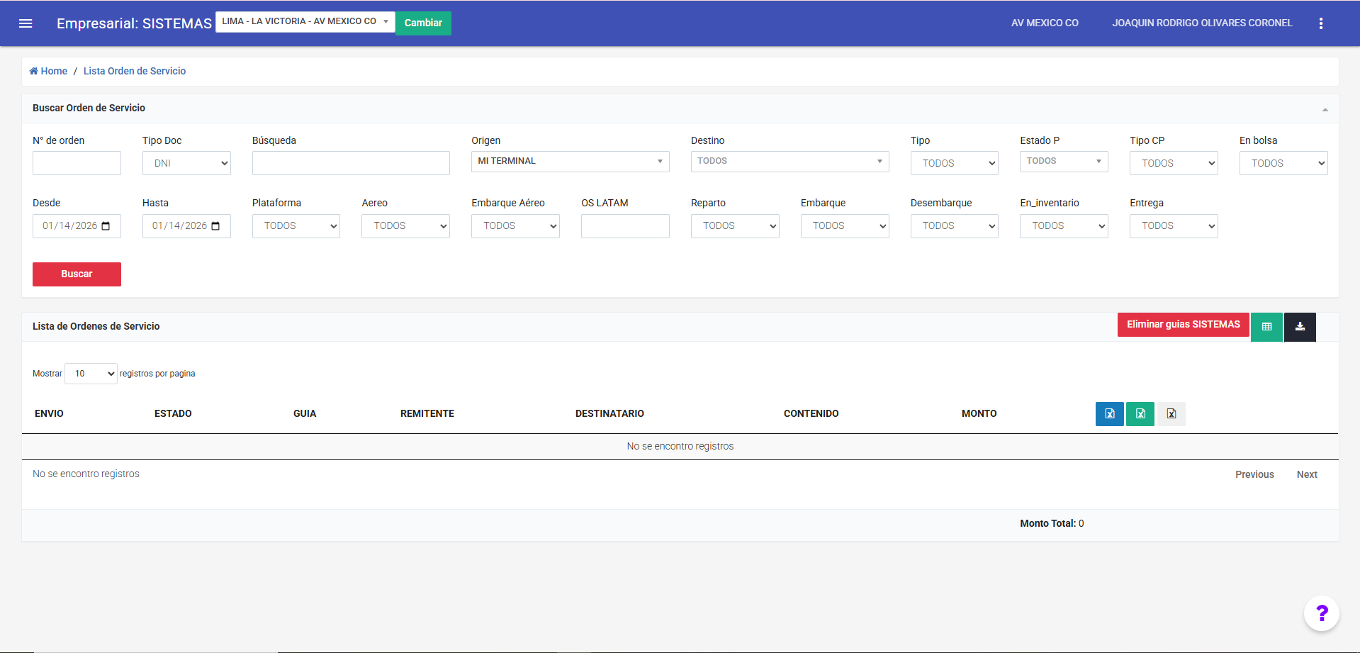 Ruta: EMPRESARIAL>GENERALES>LISTA ORDEN DE SERVICIO