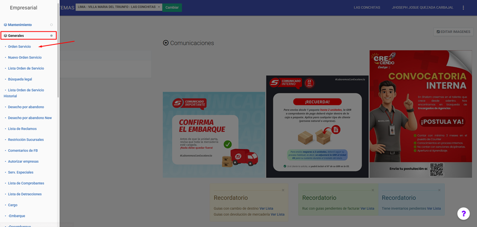 Seleccionamos la pestaña “generales” y seleccionamos orden de servicio
