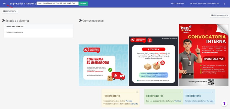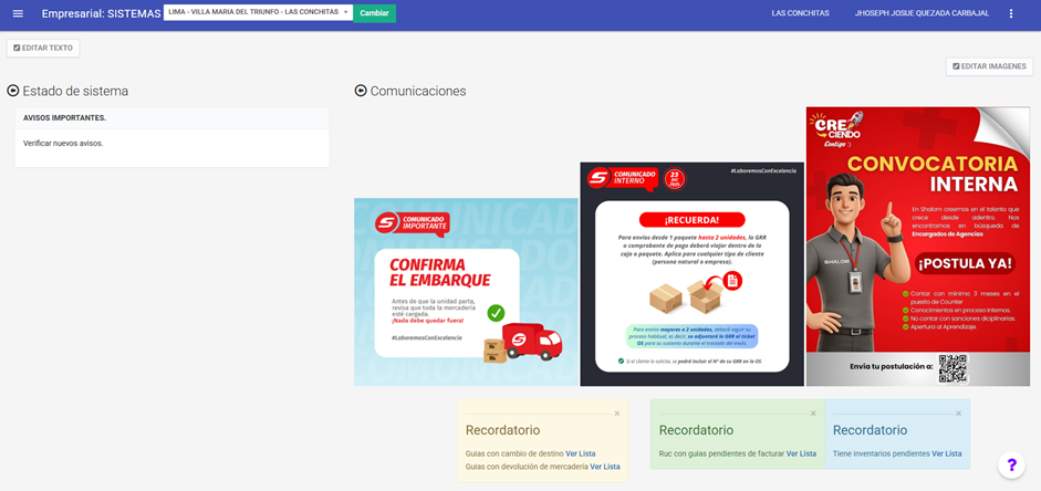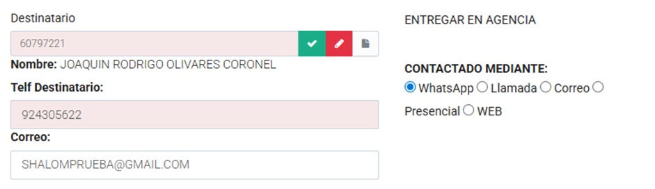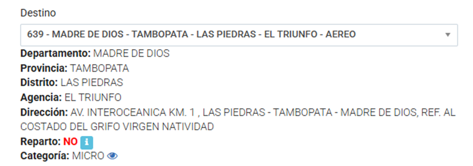 En el apartado de destino, seleccionamos la agencia a cual se quiere enviar el producto