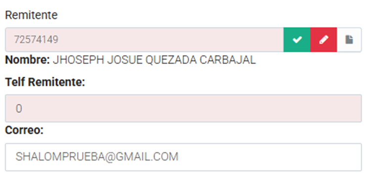 En el apartado remitente, ingresamos los datos del DNI obligatoriamente.