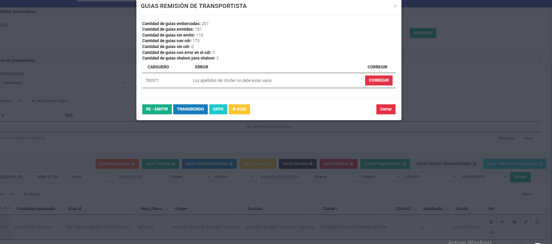 Una GRT tambien no se puede haber generado debido a inconsistencias, lo cual se puede revisar en el apartado de RESUMEN GRT de la ruta: