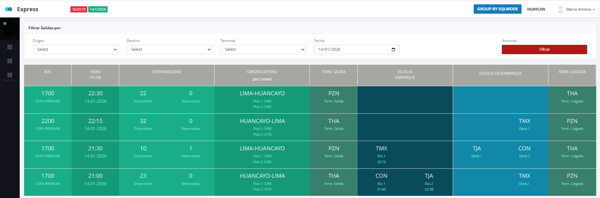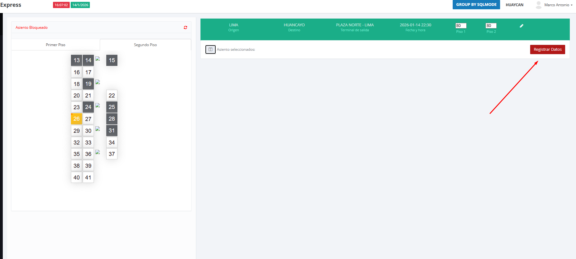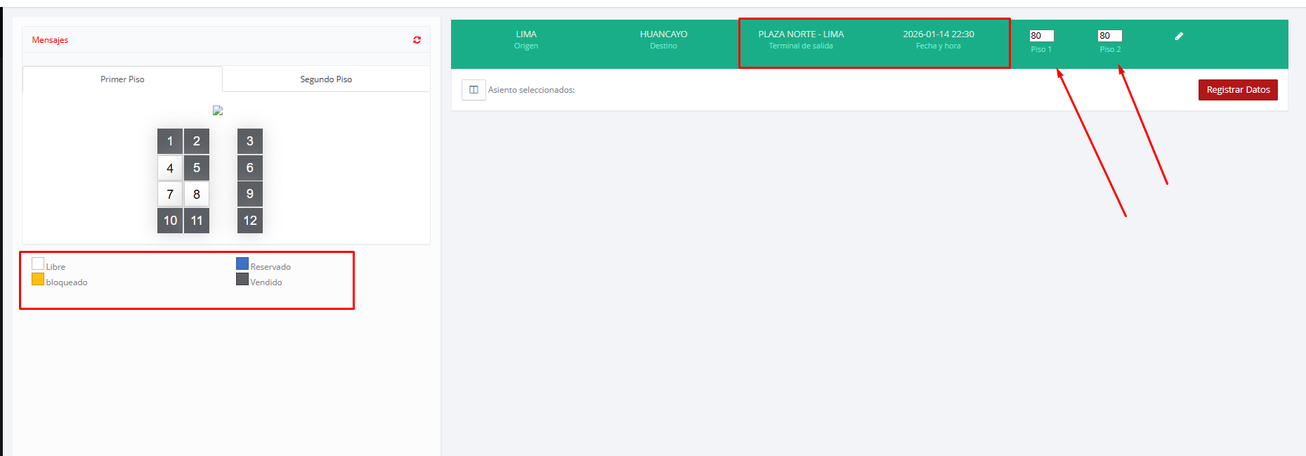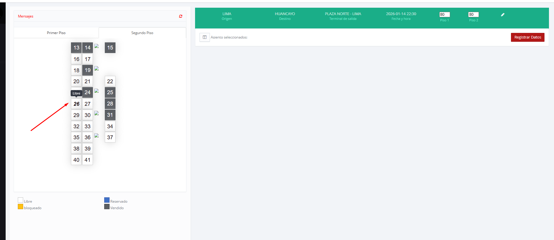 Tambien se puede realizar las ventas , tienes que seleccionar el asiento libre :