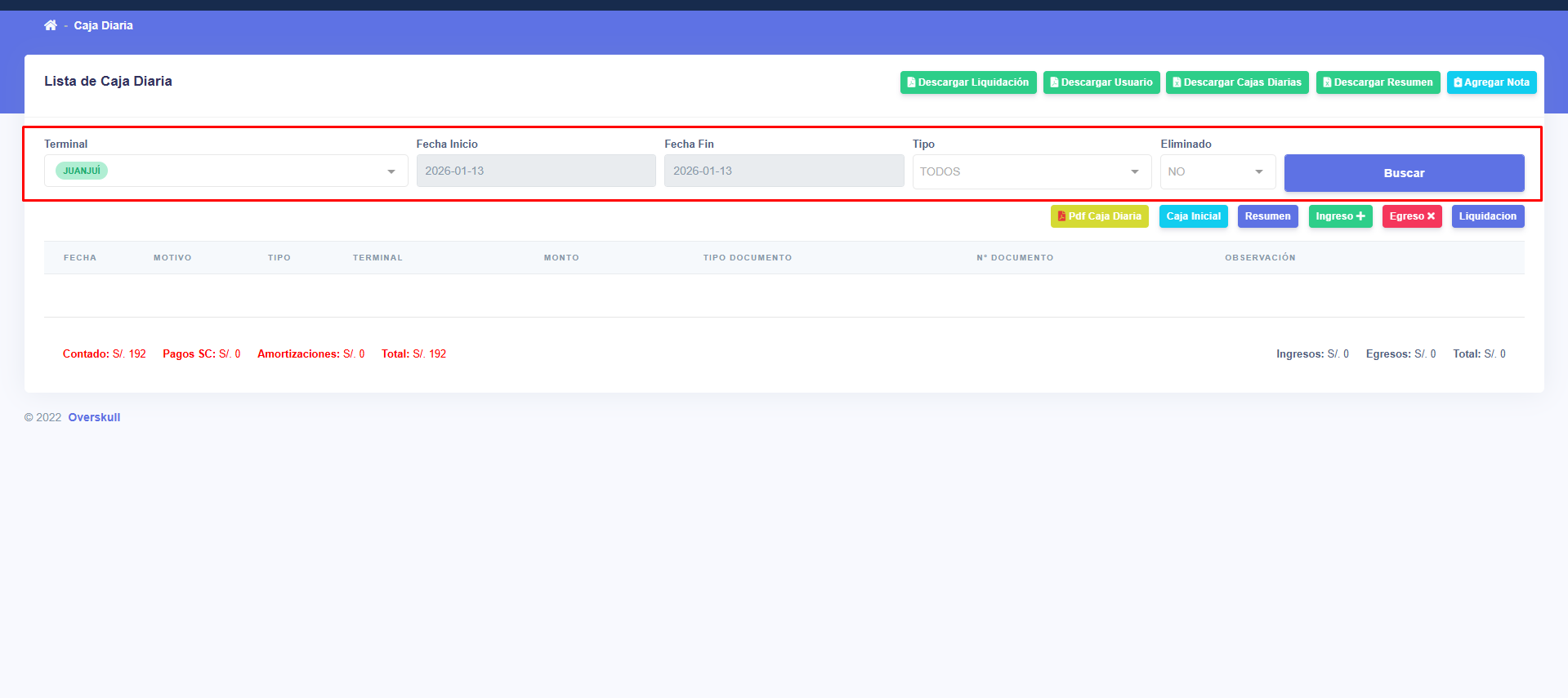 CAJA DIARIA: Podremos visualizar los montos de caja diaria, editarlo o añadir.