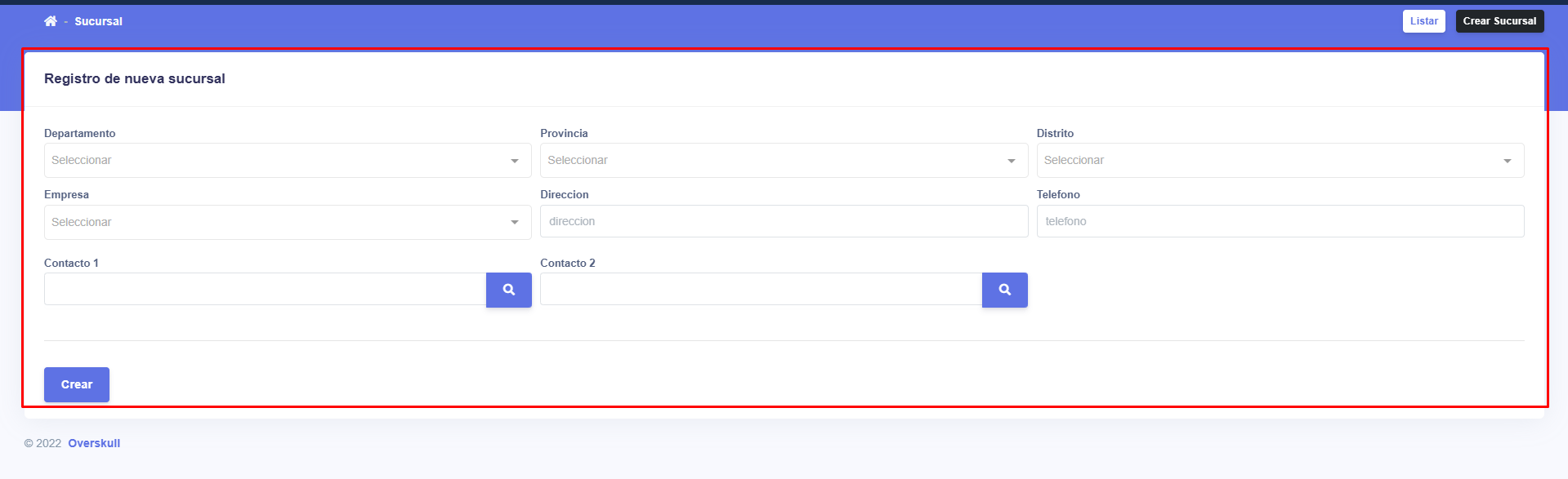 EN ESTE APARTADO PODREMOS VER EL LISTRADO DE SUCURSALES, DONDE TENDREMOS LAS OPCIONES DE CREAR, EDITAR, ELIMNINAR Y ACTUALIZAR