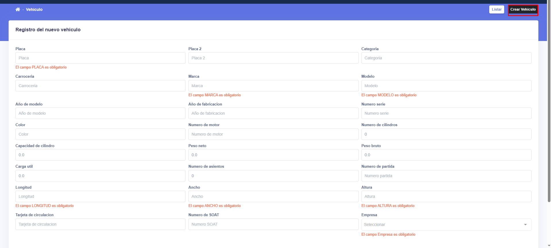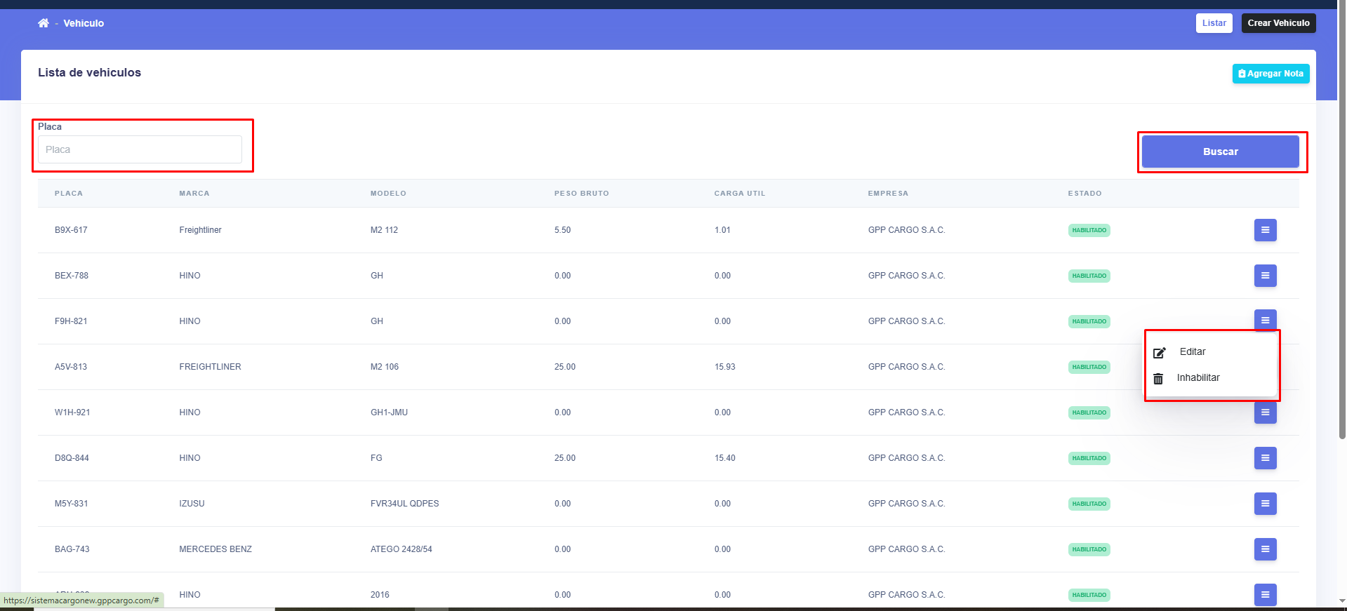 VEHICULOS: Podremos ver la lista de vehiculos, asi como añadir, eliminar, actualizar.