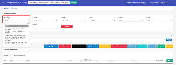 - Con el nombre de agencia verificamos que no cuente ya con un cierre store.