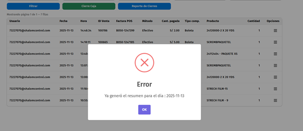 Si figura ese mensaje es porque aún no realizó su cierre de store e indicamos al compañero que haga su cierre.