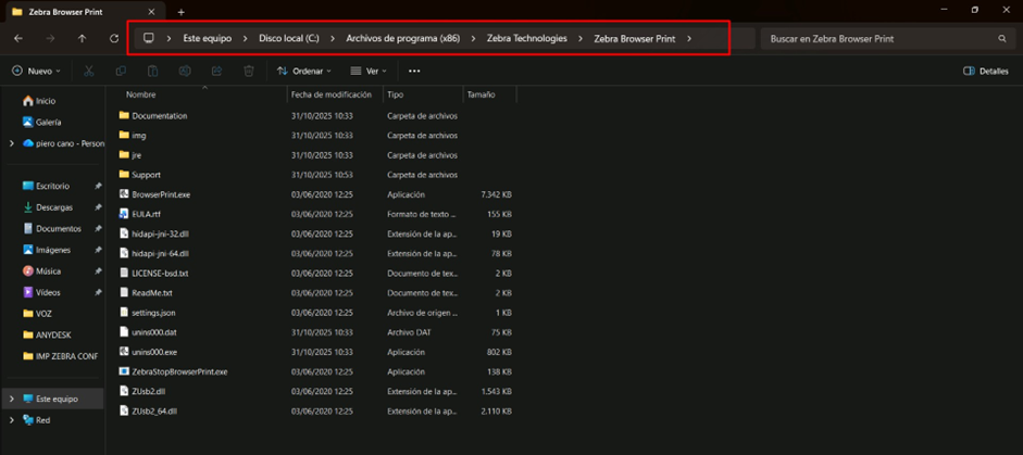 ● ruta: C:\Program Files (x86)\Zebra Technologies\Zebra Browser Print