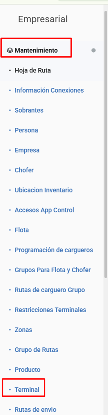 Dirigirse1. En el empresarial, nos dirigirnos al apartado Mantenimiento y seleccionar la opción Terminal.