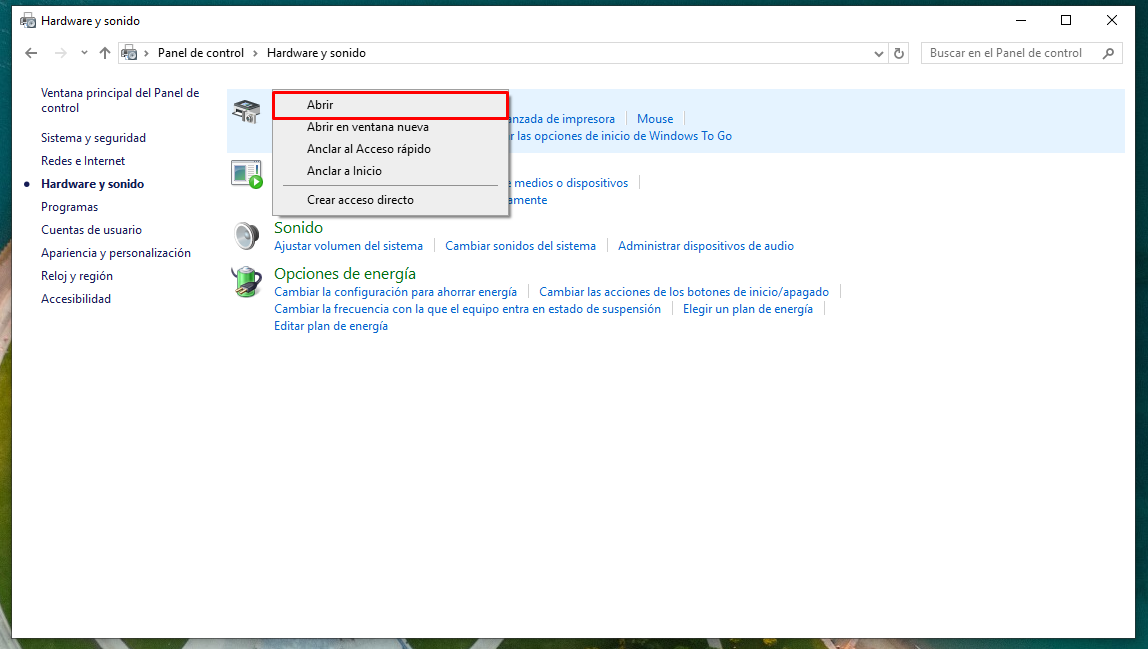 PASO 2: Click derecho en Dispositivos e Impresoras
