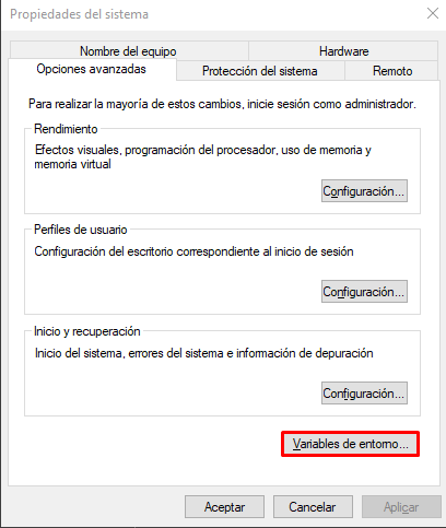 Ahora le damos click en variables de entorno: