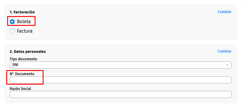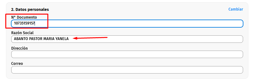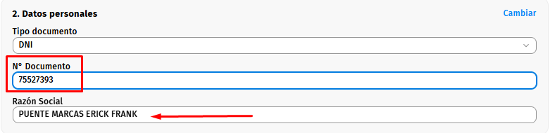 Para emitir por boleta solo es necesario el DNI del cliente, automaticamente en "Razón Social" aparecera el nombre y apellido del cliente: